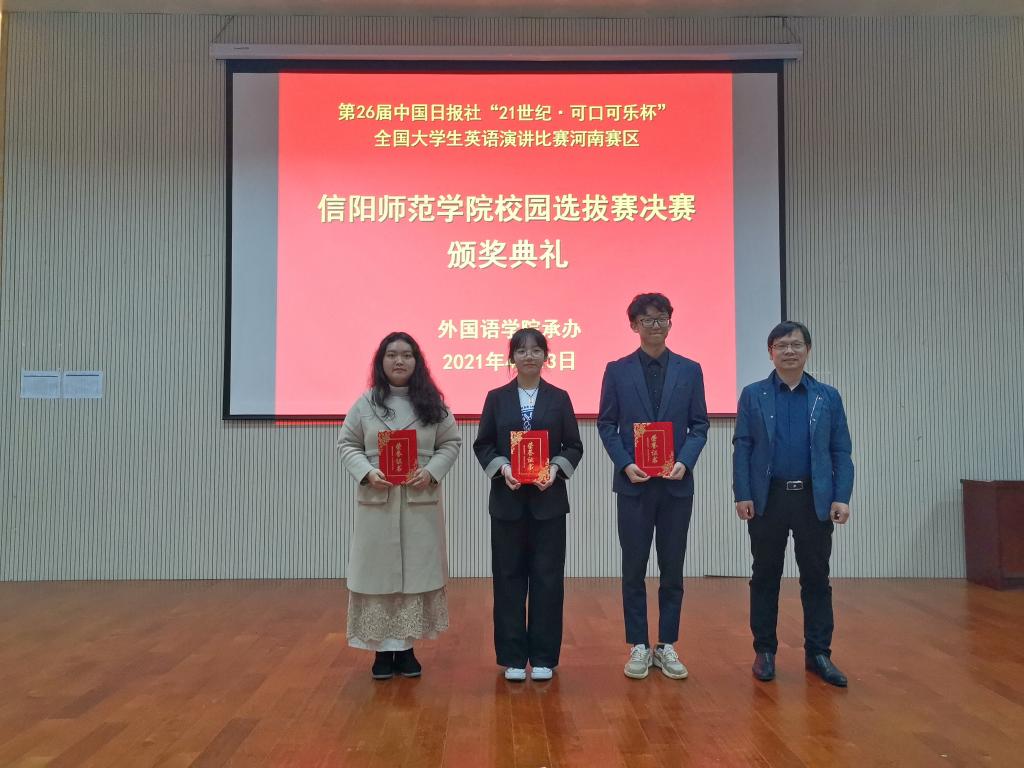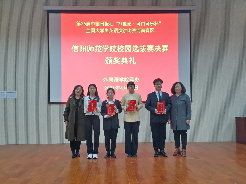承办的第二十六届中国日报社“21世纪可口可乐杯”全国大学生英语演讲比赛河南赛区信阳师范学院校园选拔赛决赛于人文楼报告厅圆满落幕。拷贝漫画