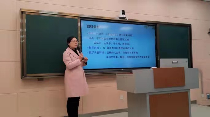 课程思政教学设计大赛暨“金课建设”研讨会。学院党委书记陈铭,副院长吴向东、余永锋、郭敏及各系、教研室主任和教学督导专家共同观摩了参赛老师们的课程设计展示,本次比赛包括两个环节,分别是课程视频展示和现场教学设计说课,评委根据课程思政教学竞赛标准进行评分。经过激烈的角逐,日语系李静老师、二外教研室曹慧琳老师获一等奖;英语系傅翀老师和杨慧芳老师获二等奖。随后,与会全体人员针对“金课建设”和如何开展课程思政教学进行了专题研讨。各系、教研室主任及教学督导专家纷纷从教学内容设计、教学目标、课程思政融入英语课堂的策略等角度发表了自己的意见。
