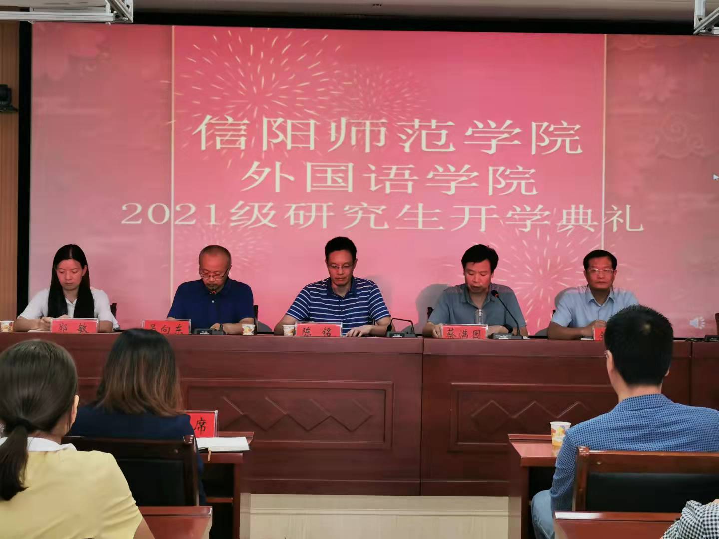2021级研究生新生开学典礼在人文楼607会议室举行。党委书记陈铭、院长蔡满园、副院长吴向东、余永锋、郭敏与拷贝漫画