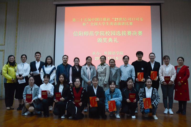 承办的第二十五届“21世纪·可口可乐杯”全国大学生英语演讲比赛河南赛区信阳师范学院校园选拔赛于2019年11月5日圆满落幕。拷贝漫画