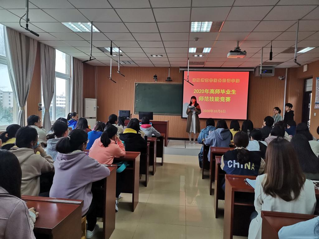 在人文楼五楼507教室举办2021届高师毕业生师范技能选拔赛。副院长姚光金、英语系主任余运伟、副主任王艳,教师代表王艳、郭敏、蒋小军、孙媛园、李小静、宋冬梅、张倩担任评委,2018级英语专业部分学生观摩了此次比赛。