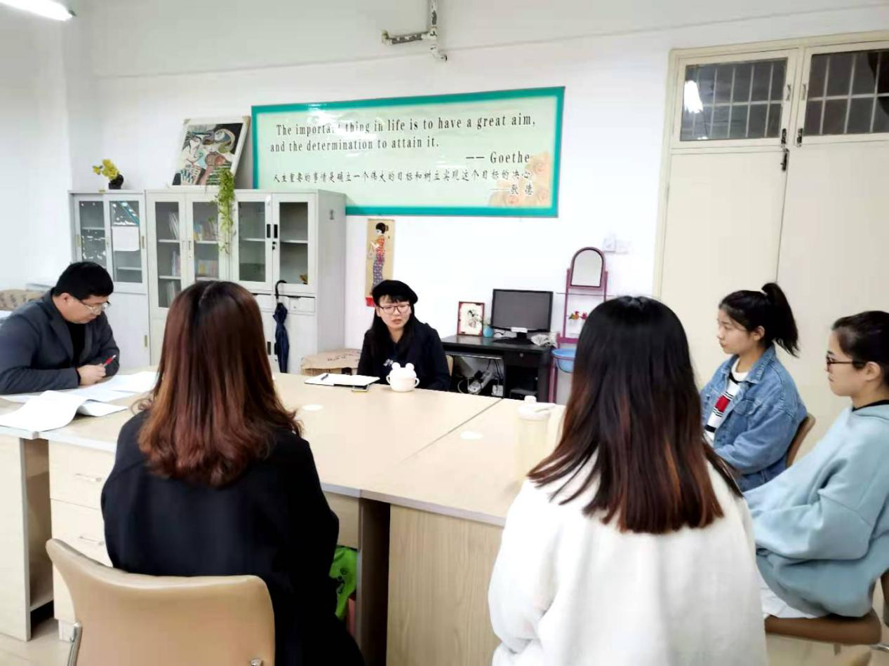 日语系赴日本札幌大学交换留学资格面试工作在日语系办公室开展。面试官由日语系主任张鸿鹏博士、日语系教师李静博士担任,日语专业二、三年级共计11名学生参加了面试。