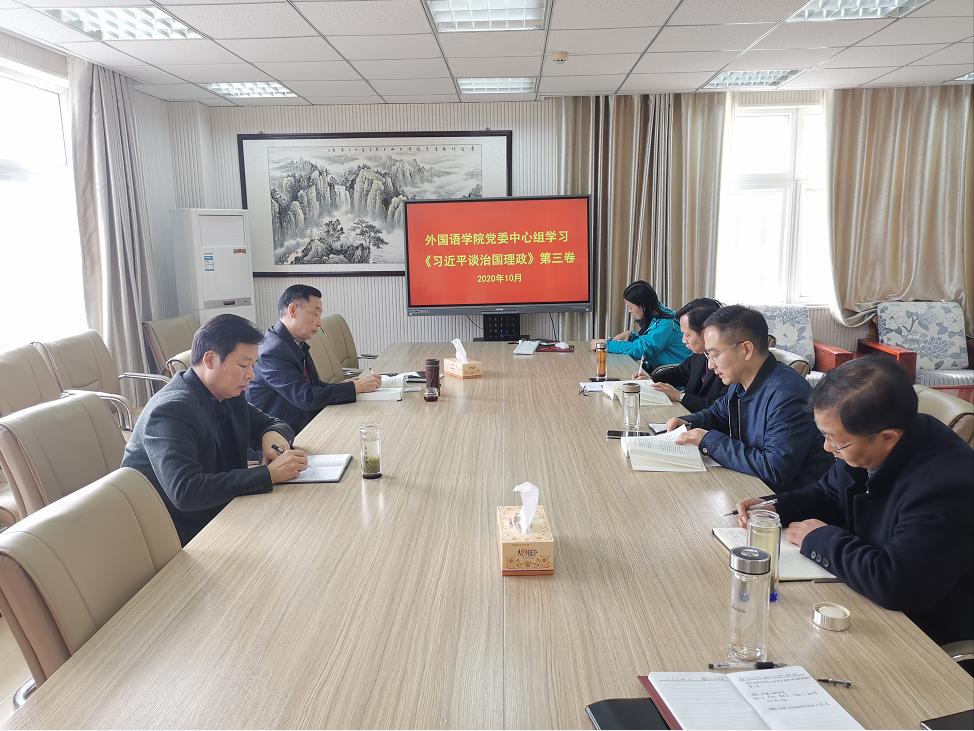 党委中心组召开理论学习会议,专题学习《习近平谈治国理政》第三卷。学院全体党委委员参加会议,会议由院党委书记周学红主持。
