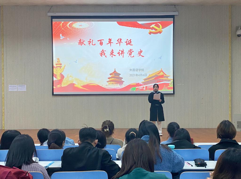 于人文楼报告厅、105教室同步开展“献礼百年华诞,我来讲党史”微型党课比赛。学生各党支部书记以及全体学生党员和党员发展对象共同观看此次微型党课比赛。