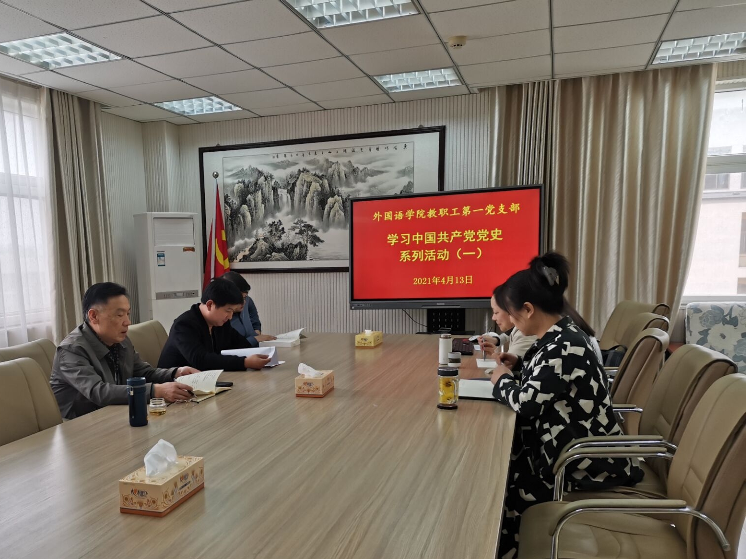 教工第一党支部组织全体党员集中观看《百炼成钢:中国共产党的100年》1-4集,重温党的历史,在“回看走过的路”中不断汲取真理的力量、信仰的力量、意志的力量、道德的力量;不断增强“四个意识”、坚定“四个自信”、做到“两个维护”,立足岗位,努力工作,以优异成绩迎接中国共产党成立100周年。