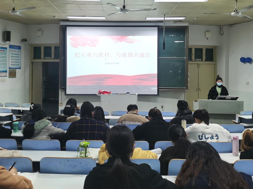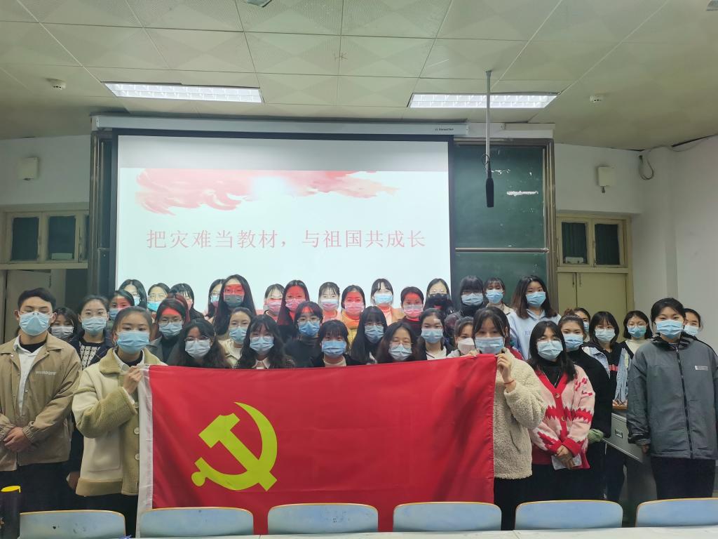 党员发展对象在人文楼310教室开展“把灾难当教材,与祖国共成长”为主题的防洪抗疫故事分享会。