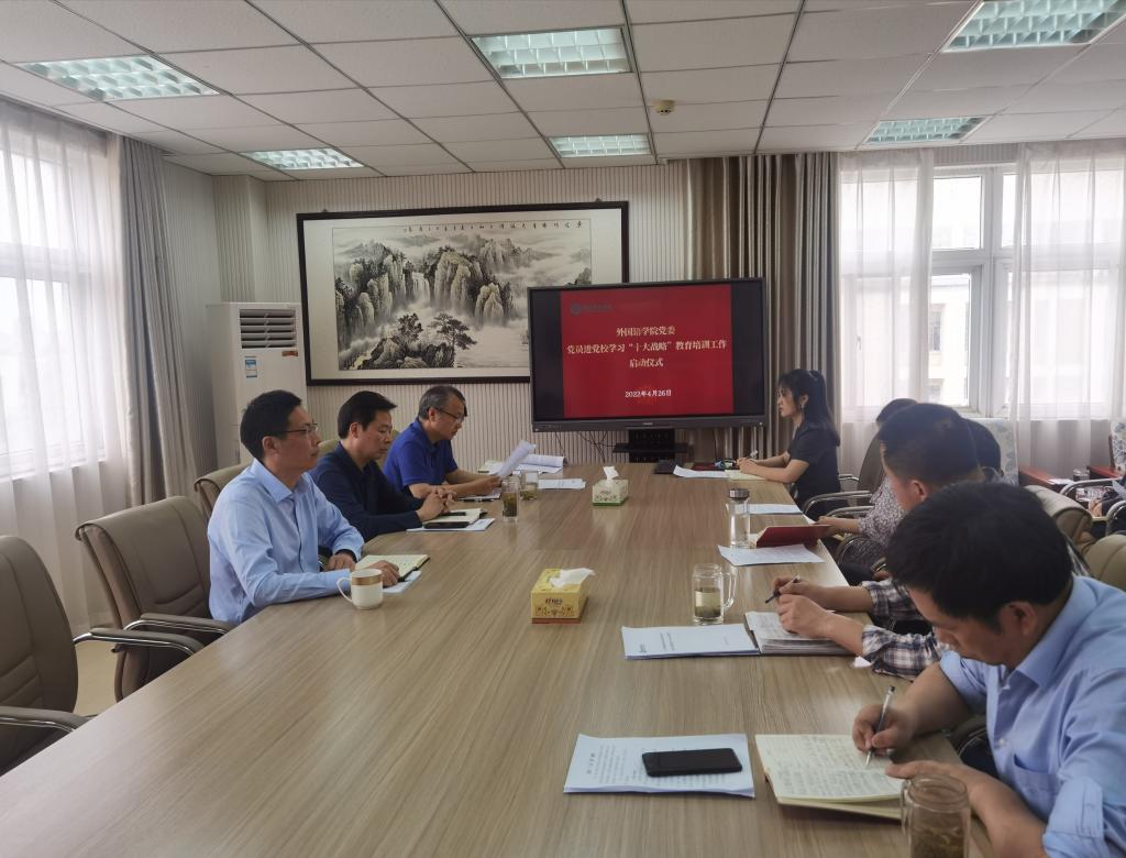 党委于人文楼五楼会议室召开党员进党校学习“十大战略”教育培训工作启动仪式,学院党委书记陈铭,院长蔡满园,党委副书记高彦伟,副院长吴向东、余永锋、郭敏及全体党支部书记参加会议。会议由陈铭主持。