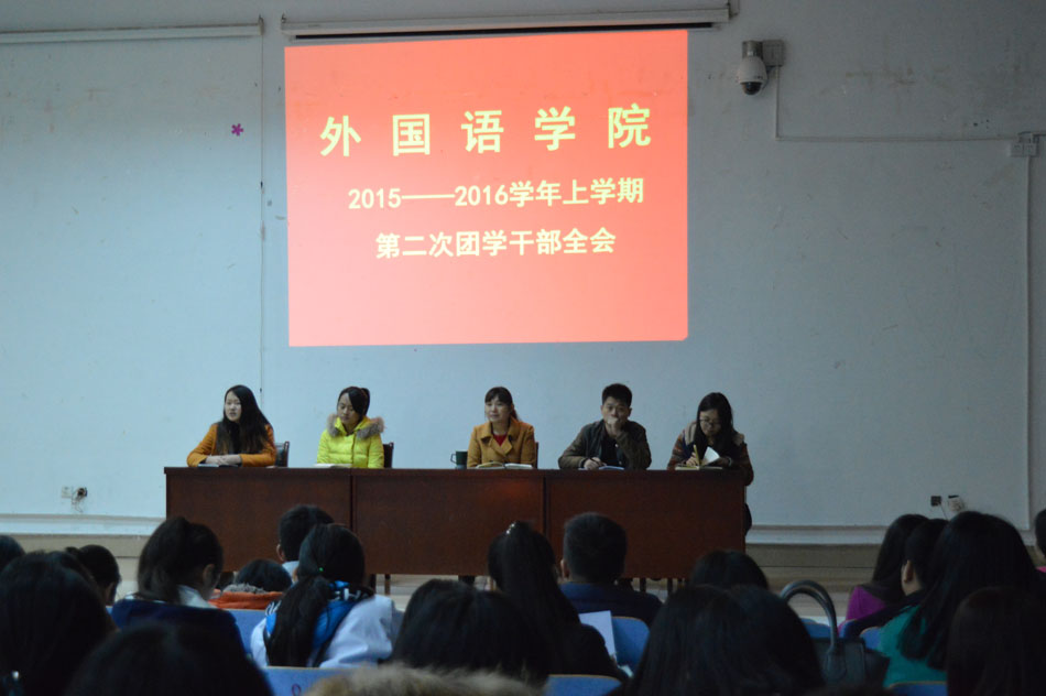 团总支书记任芳,辅导员陈龙、孔宪巍,学生会主席苗璞及团总支副书记黄弈凤出席了本次会议,100余名学生干部参加会议。会议由苗璞主持。