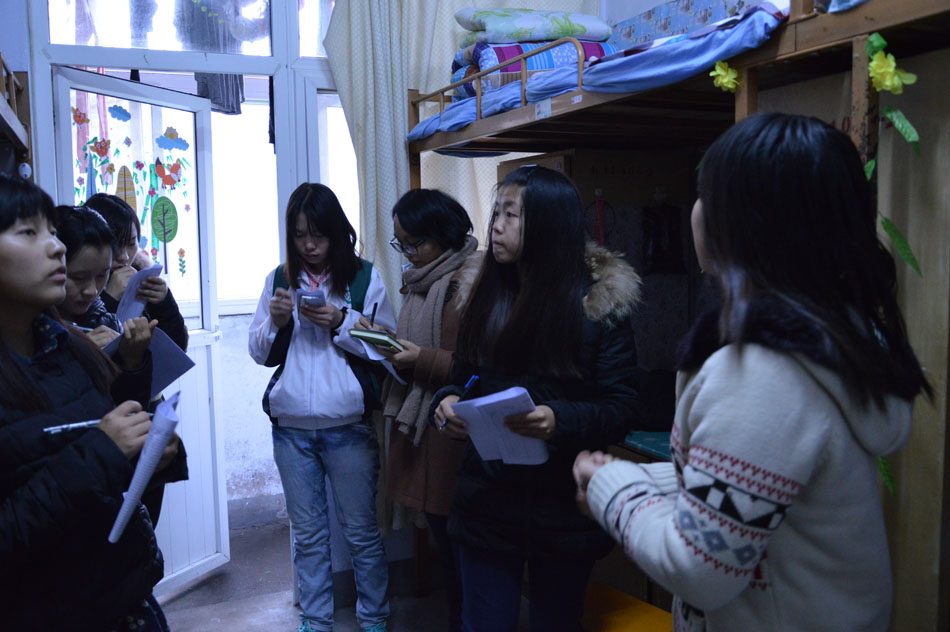 学生会劳卫部、生活部、安教部的相关负责人组成评审团参观新生宿舍并对其进行评比和审查。