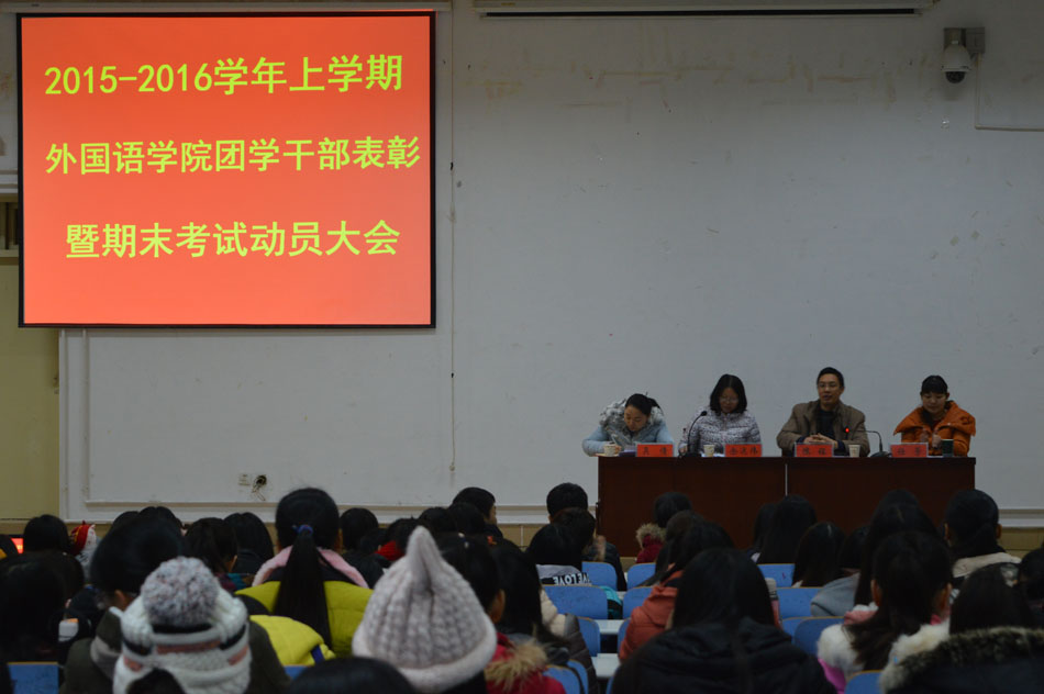 2015-2016学年上学期团学干部表彰暨期末考试动员大会在人文楼报告厅举行。拷贝漫画