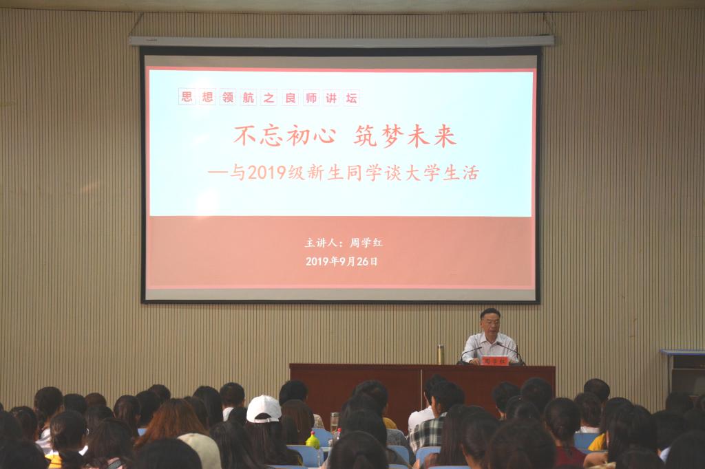 周学红作了题为“不忘初心,筑梦未来——与2019级新生同学谈大学生活”首场专题报告,围绕生活、交友、纪律三个关键词为新生解读大学生活。他希望新生同学在生活方面要养成良好的习惯,合理消费;在交友方面要以诚待人,学人之长,建立良好的人际关系,处理好感情生活;在纪律方面,能够自觉遵守政治纪律、学习纪律和生活纪律。他祝愿全体新生同学不忘来时初心,拼搏奋进,用汗水筑造美好未来。