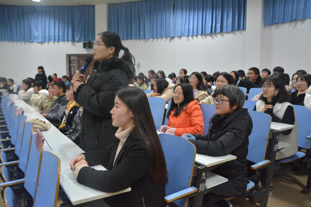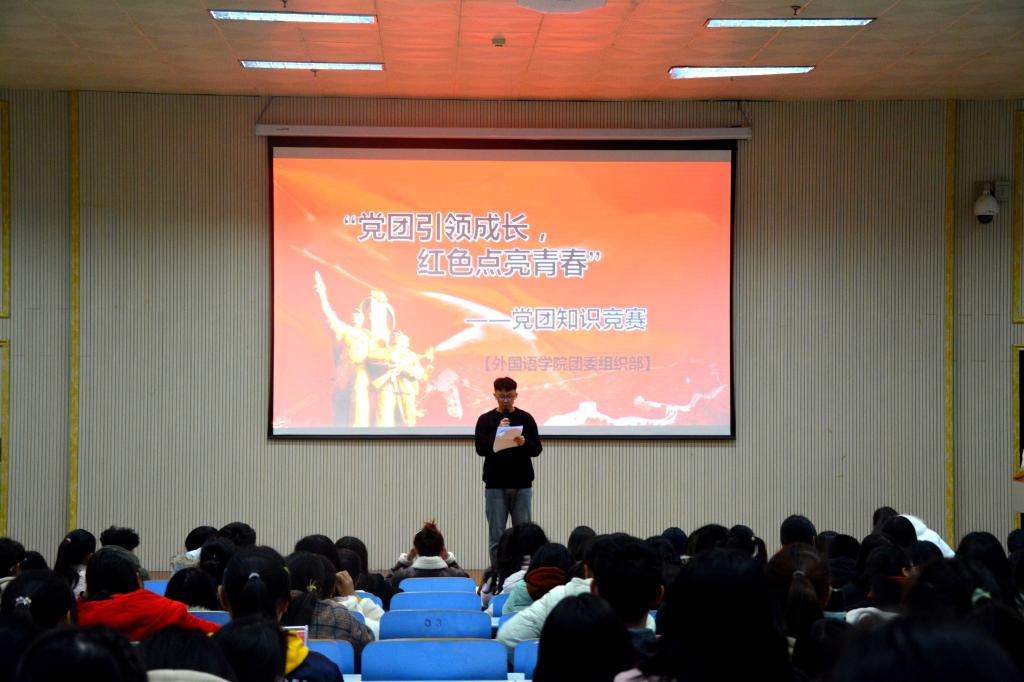 在人文楼报告厅举办“党团引领成长,红色点亮青春”党团知识竞赛,团委书记孔宪巍与2019级全体学生共同参加此次活动。