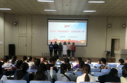 在人文楼报告厅举行“诚信校园行”短剧大赛。本次比赛由辅导员孙桢桢老师、学院学生会主席团担任评委。