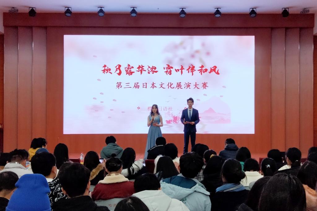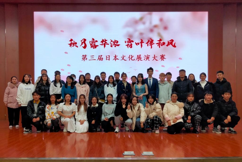 在逸夫楼报告厅举办第三届日本文化展演大赛。日语专业外教田口晴近,日语专业任课教师张鸿鹏博士、晏少杰老师、李静博士及拷贝漫画