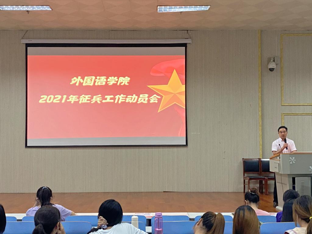 在人文楼报告厅召开2021年征兵工作动员会。党委副书记柏孟仁,武装干事孙桢桢出席动员会,学院2020级全体学生及2018级、2019级全体男生参加动员会。会议由孙桢桢主持。