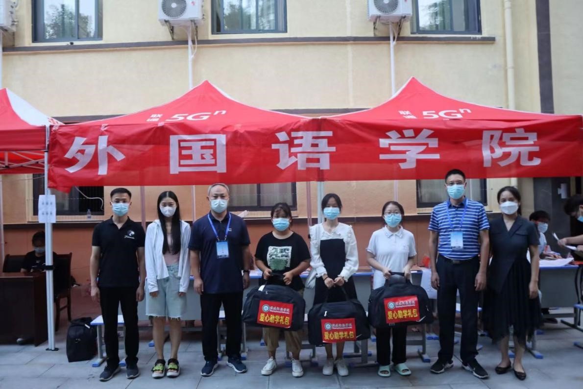 在迎新现场,学院为家庭经济困难新生开设了专门的绿色通道,学生会干部耐心向大家讲解有关事项并办理暂缓缴纳学杂费手续,切实保障家庭经济困难新生顺利入学。与此同时,学院领导为部分家庭经济困难新生发放“爱心大礼包”。