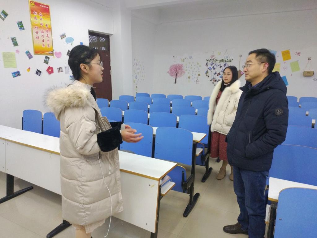 柏孟仁一行边参观边与同学们深入交流。大家一致认为,班级同学集体参与心情墙设计有利于促进班级文化建设,增强班级凝聚力;设计成果很好地总结凝练了班级文化特色,营造了浓厚的班级文化氛围,既是加强班级文化建设的有效抓手,也是引导同学们合理宣泄情绪、促进健康成长的有效途径。