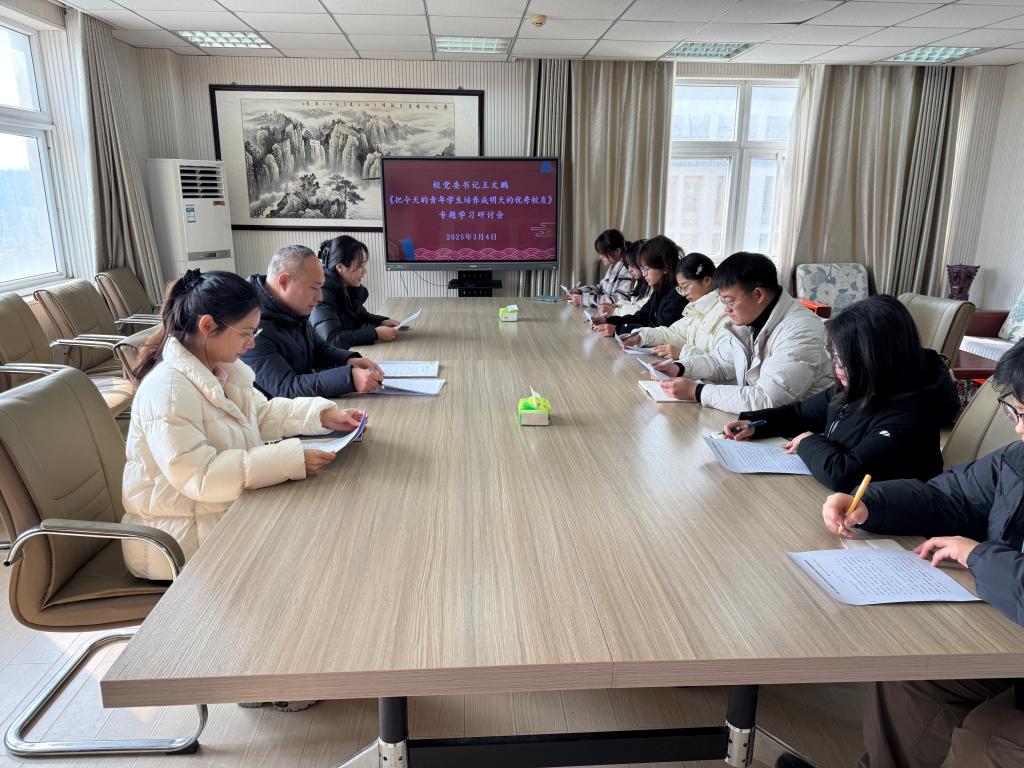 在人文楼5-01会议室召开会议,专题学习校党委书记王文鹏致2025年学工队伍的一封信《把今天的青年学生培养成明天的优秀校友》。学院党委副书记高彦伟及专兼职辅导员、学生代表参加会议。