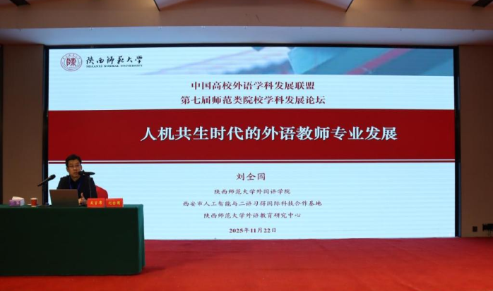 陕西师范大学刘全国教授在“人机共生时代的外语教师专业发展”报告中,指出人机共生时代外语教师面临教学个性化、科研团队化等新趋势,但也存在素养瓶颈。提出教师应提升技术素养并坚守人文价值,在智能共生中重塑角色,适应开放协同的教育新秩序,通过“协同发展、借力发展、错位发展”路径,实现内涵多元化发展,构建教师发展人机共同体。