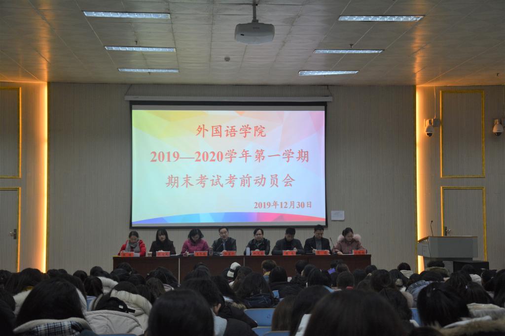 在人文楼报告厅召开2019—2020学年第一学期期末考试考前动员会,学院党委副书记柏孟仁,副院长姚光金,教学秘书宋冬梅,组织员陈龙,团委书记孔宪巍,教务员张倩,辅导员周旋、孙桢桢出席会议,全体学生干部参加会议。会议由周旋主持。