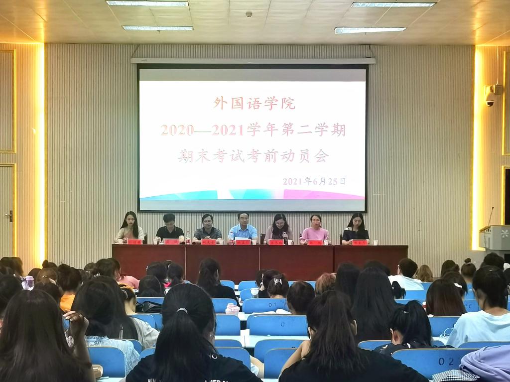 在人文楼报告厅召开2020—2021学年第二学期期末考试考前动员会,学院党委副书记柏孟仁,副院长姚光金,教学秘书宋冬梅,教务员张倩,辅导员周旋、孙桢桢、郗金月与全体学生干部参加会议。会议由姚光金主持。