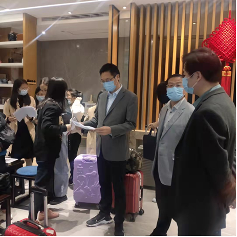 党委书记陈铭,院长蔡满园,副院长余永锋、班主任王辰玲、刘怡露前往“省培计划(2021)”小学英语培训班学员报到处及住处慰问参训学员。