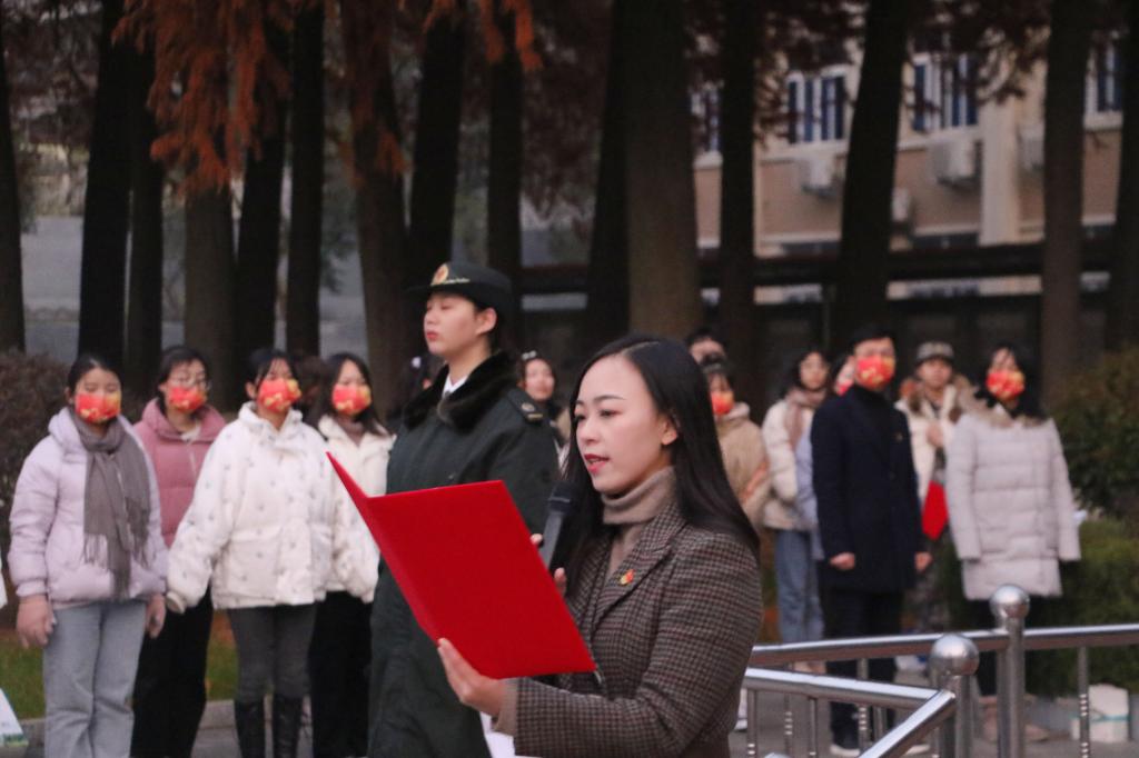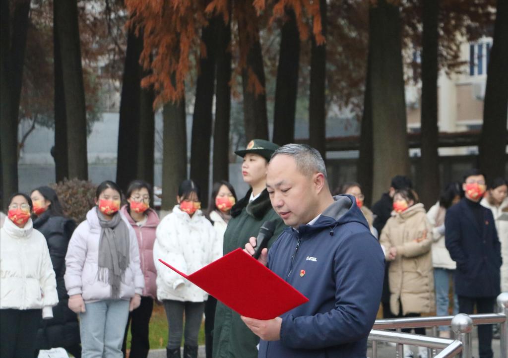 党委书记陈铭、副书记高彦伟、副院长余永锋、全体专职辅导员以及2021级学生代表参加了升旗仪式。