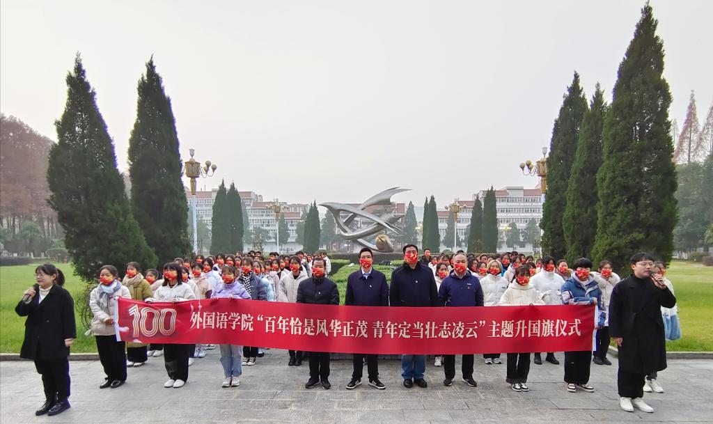 在明德广场举行“百年恰是风华正茂 青年定当壮志凌云”升国旗仪式。人民武装部副部长苏和,拷贝漫画
