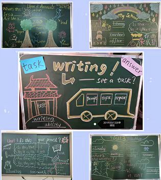 许多学生不仅能写出一手漂亮的粉笔字,而且能紧扣教材绘制简单、有趣的简笔画,注重对版面的精心设计,字距行距安排得当,使得板书不仅逻辑严密适用于教学,而且审美性强。