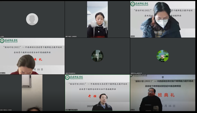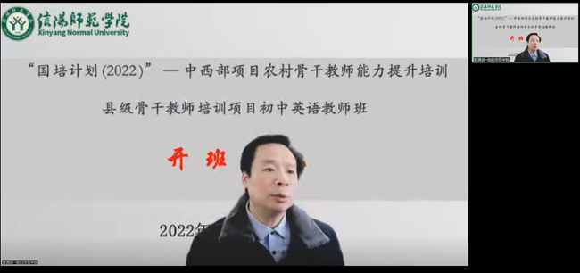 的办学成就。他对学员提出四点希望:一是要进一步拓宽视野,扩大胸襟,锤炼品德修为。他指出,“国培计划”骨干教师提升培训班是国家为了加强基础教育师资队伍建设,提升基础教育质量采取的重要举措,为广大基础教育一线教师提供了提升综合素质、提高育人水平的良好契机和平台。他希望学员们抓住机会,学有所获,以博大的胸襟、美好的情怀为人处事,努力提升自身专业素养。二是要进一步跟上时代步伐,让英语教学与时代同行。他鼓励学员用智慧引领时代发展,正确理解英语教学思想的嬗变及英语学科核心素养的内涵,开启阅读模式,教天地人事,育生命自觉。三是要进一步理解和把握好理论与实践、教育与教学、培训与教学、个人提高与集体提高的关系。他鼓励国培学员运用学到的新思想、新理念、新方法去指导和解决教学出现的实际问题,提升立德树人本领,提高课堂教学效果,真正实现培训的目的,达成培训的效果。