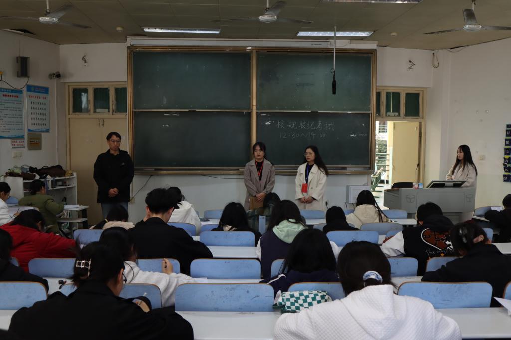 本次考试以《思想政治教育材料选编2023年学生工作规章制度专刊》为主要内容,设置填空题、选择题、判断题、简答题、论述题等题型,主要考查同学们对校规校纪的学习掌握情况。考试过程中,老师监考严格,考生答题认真,考场纪律严明。