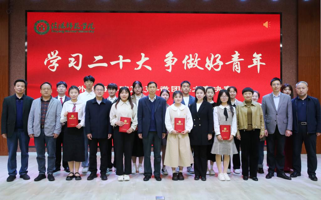 负责人介绍了此次微团课大赛的举办情况、学院“五育+比赛”协同育人学生工作品牌的创建情况,以及学院开设“五育大讲堂”的初衷和愿景,勉励广大同学立志做有理想、敢担当、能吃苦、肯奋斗的新时代好青年。随后,与会领导为此次微团课大赛获奖选手颁发获奖证书并合影留念。