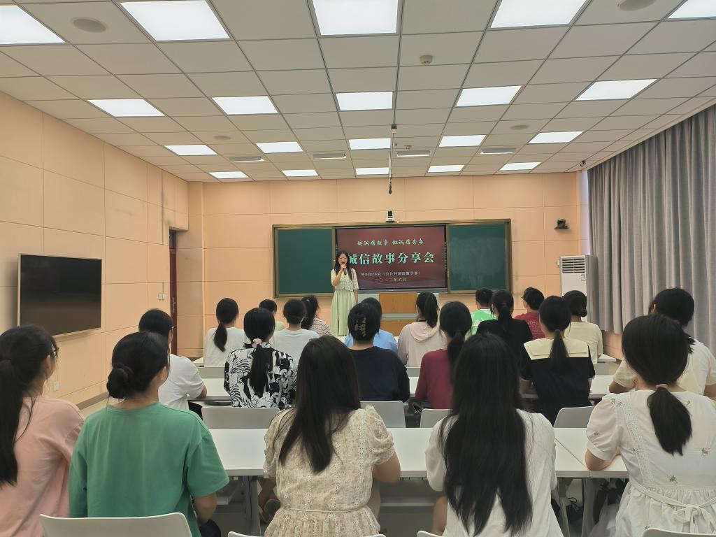 在人文楼603教室举办诚信故事分享会,学院资助专员孔宪巍及2022级部分学生代表参加了会议。