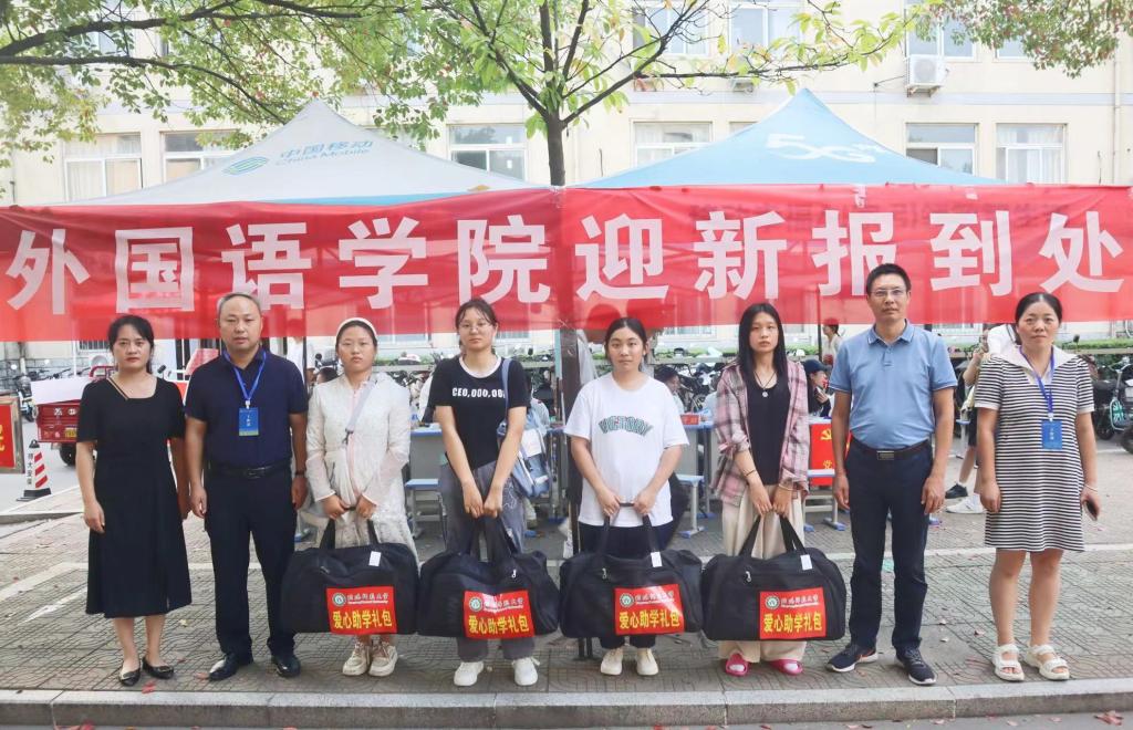 在迎新现场,学院为家庭经济困难新生开设专门的绿色通道,学生干部耐心向大家讲解有关事项,切实保障家庭经济困难新生顺利入学。与此同时,学院领导为部分家庭经济困难新生发放“爱心大礼包”。