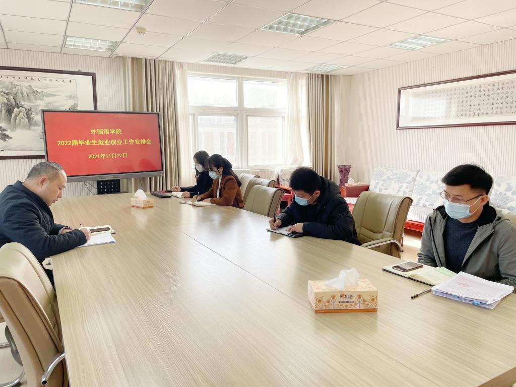 2021届毕业生就业创业工作进行了总结回顾,针对2022届毕业生就业创业工作,他提出四点要求:一要提高政治站位,深化思想认识。努力提升毕业生就业创业工作质量,以优异成绩迎接党的二十大胜利召开。二要加强组织领导,确保工作实效。学院成立2022届毕业生就业创业工作领导小组,切实保障毕业生就业创业工作取得实效。三要做好信息推送,强化精准指导。及时宣传就业创业政策、推送招聘考试信息,加强就业创业工作的针对性和有效性。四要一手抓疫情防控,一手抓就业创业。严格落实常态化疫情防控要求,确保就业创业工作有序推进。
