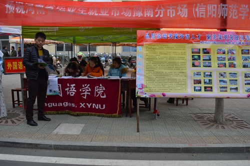 通过条幅、展板等方式对招聘活动进行大力宣传,并在人文楼东门小广场开设就业咨询点,学生会就业服务部工作人员热情为招聘单位和毕业生提供咨询服务。
