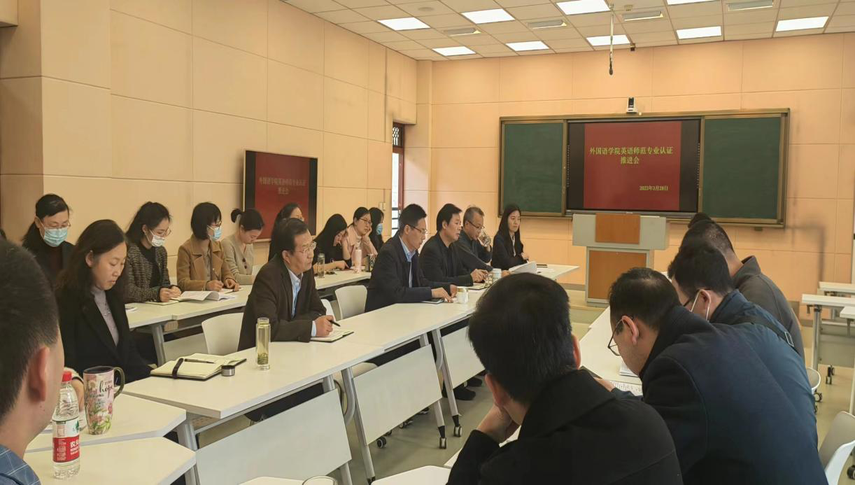 英语师范专业认证推进会。党委书记陈铭、院长蔡满园、副院长吴向东、章彩云、余永锋、郭敏及师范认证小组成员参加了此次会议。会议由蔡满园主持。