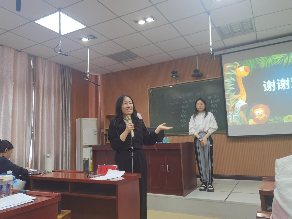 2020级学生王柳元围绕“Atthe zoo”的主题,通过情景模拟、板书展示等多种方式,生动形象的开展了一场充满童趣的优质课讲演。随后朱灵同学以“What were you doing when the rainstorm came”为主题,通过提问、互动、视频展示等形式,带领大家开展了一场精彩的教学“旅行”。