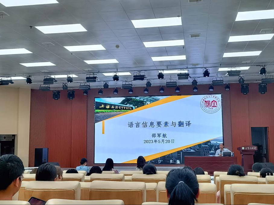 邵军航教授的讲座以“语言是通过大脑中认知世界即理思世界对感知世界的编码”为切入点,认为语言承载的信息包括认知功能信息、句法功能信息、语体信息、信念信息、语用信息、蕴涵信息、修辞信息等;这些类型的信息通过语素、单词、短语、构式、句子等语言编码类型进行传递。邵教授指出翻译过程中的语码转换要传递源文中的信息点,而且信息含量要保持对等,为达到信息等值的目的,就要采用相应的翻译技巧。